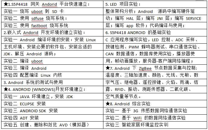 7、基于 WiFi/BT 的網(wǎng)絡(luò)通信開(kāi)發(fā):可以開(kāi)展 WiFi/BT 通信原理、WiFi/BT 模塊驅(qū)動(dòng)開(kāi)發(fā)、WiFi/BT 模塊原理設(shè)計(jì)、WiFi/BT 互聯(lián)網(wǎng)接入、WiFi/BT 移動(dòng)通信與物聯(lián)網(wǎng)應(yīng)用開(kāi)發(fā)等。