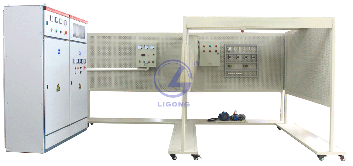 (7) 電動機機組、變壓器:配有電動機安裝平臺一套、350W直流電機一臺、1.1kW三相鼠籠式異步電動機一臺、5kVA干式變壓器一臺帶無載分接頭,分別可以正負5%和10%無載調(diào)壓。