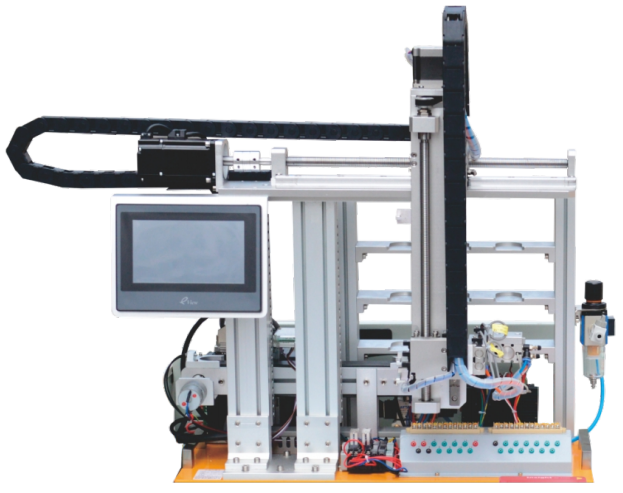 一、裝置特點 1. 配置三軸機器人作為裝配的執(zhí)行機構(gòu),具有 X軸、Y軸、Z軸三個方向的執(zhí)行能力,可完成智能抓取物料放料等功能; 2. 配置有光電開關(guān),光電傳感器,光纖...
