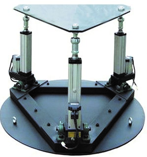 LG-JT型動感交通安全體驗(yàn)駕駛模擬器設(shè)備由模擬駕駛艙、視景模擬駕駛軟件、數(shù)據(jù)采集系統(tǒng)、三自由度平臺系統(tǒng)由Stewart機(jī)構(gòu)的三自由度運(yùn)動平臺、計(jì)算機(jī)控制系統(tǒng)、驅(qū)動系統(tǒng)等組成(如下圖)。下平臺安裝在地面的固定基座基上,上平臺為支撐平臺。計(jì)算機(jī)控制系統(tǒng)通過協(xié)調(diào)控制電動缸的行程,實(shí)現(xiàn)運(yùn)動平臺的三個自由度的運(yùn)動。