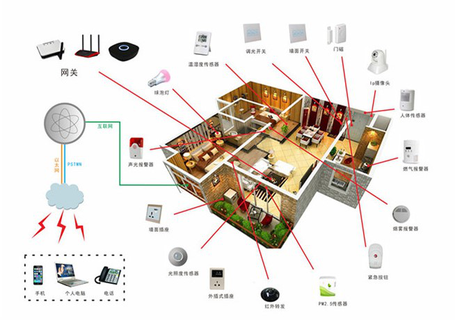 5、智能家居網(wǎng)關(guān):智能家居網(wǎng)關(guān)作為整體系統(tǒng)的核心設(shè)備,建立zigbee無線網(wǎng)絡(luò),與各個(gè)智能終端相連,運(yùn)行在手機(jī)端的管理軟件向智能家居網(wǎng)關(guān)發(fā)送命令可統(tǒng)一管理各傳感器與窗簾電機(jī)、家用電器、燈光系統(tǒng)等設(shè)備。軟件把傳感器與電器聯(lián)系起來,使之成為一個(gè)整體,互相影響,互相協(xié)作運(yùn)行,實(shí)現(xiàn)對(duì)家居電器的自動(dòng)化管理、安防自動(dòng)化等功能。軟件提供遠(yuǎn)程服務(wù),用戶通過軟件可實(shí)施遠(yuǎn)程控制家電,并實(shí)現(xiàn)遠(yuǎn)程監(jiān)控。