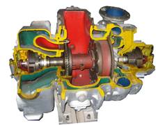 型號(hào):LGJ-WL01 汽車渦輪增壓器實(shí)物材料,剖面涂不同顏色,突出結(jié)構(gòu)層次。...