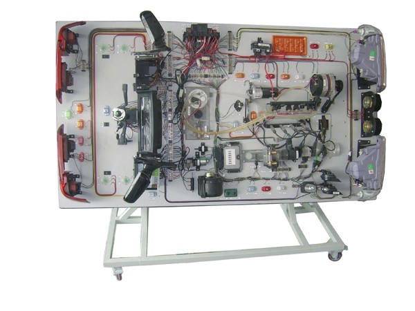 外形尺寸:1500*600*2000mm 組成:燈光系統(tǒng)元器件、組合儀表及移動(dòng)式滾輪臺(tái)架。 1.帶燈光系統(tǒng)電路圖面板,平面布置各個(gè)元器件,使燈光系統(tǒng)清楚可見。 2.面板帶檢測(cè)端子...
