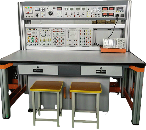 裝置由主機(jī)箱、實(shí)驗(yàn)桌、實(shí)訓(xùn)掛箱、獨(dú)立封裝實(shí)訓(xùn)電路模塊、移動(dòng)矮柜、示波器架、學(xué)生凳等組成。實(shí)訓(xùn)裝置支架與實(shí)訓(xùn)桌可組合、可拆裝。支架與桌腳一體,鋁合金結(jié)構(gòu),實(shí)訓(xùn)掛箱、各實(shí)驗(yàn)?zāi)K可根據(jù)實(shí)驗(yàn)需求自由組合放置。