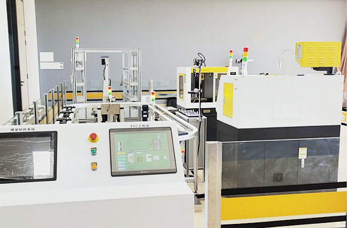 LGY-CX06型 智能制造生產(chǎn)線實訓系統(tǒng)是對工業(yè)現(xiàn)場大型設(shè)備進行提煉和濃縮的一款小型智能制造生產(chǎn)線實訓設(shè)備,專門為職業(yè)院校、教育培訓機構(gòu)等而研制的,它適合機械制造及其自動化、機電一體化、電氣工程及自動化、控制工程、測控技術(shù)、計算機控制、自動化控制等相關(guān)專業(yè)的教學和培訓。融合了數(shù)控機床加工、光、電、氣,包含了PLC、機器人、傳感器、氣動、工業(yè)控制網(wǎng)絡(luò)、電機驅(qū)動與控制、計算機等諸多技術(shù)領(lǐng)域,對柔性制 造技術(shù)的工作過程進行研究,監(jiān)控系統(tǒng)、主控PLC和下位PLC通過網(wǎng)絡(luò)通訊技術(shù)構(gòu)成一個完整的多級計算機控制系統(tǒng),通過訓練,使學生了解智能制造生產(chǎn)線的基本組成和基本原理,讓學生全面掌握機電一體化技術(shù)的應(yīng)用開發(fā)和集成技術(shù),幫助學生從系統(tǒng)整體角度去認識。為信息學院自動化和電氣工程自動化本科及其控制科學與工程研究生均提供了實驗和科研的平臺。