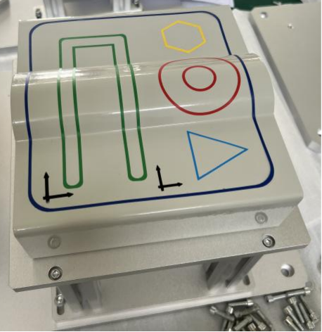 2、運動軌跡模塊:TCP練習區(qū)主要作為工業(yè)機器人的基礎學習環(huán)節(jié),能動態(tài)直觀的體現(xiàn)出TCP示教的重要性和示教的精度,能夠自由更換示教尖端;可實現(xiàn)TCP標定練習,提供TCP標定用錐形教學塊;可實現(xiàn)基本軌跡編程練習,提供三角形、方形教學軌跡;可實現(xiàn)復雜軌跡編程練習,提供曲線教學軌跡;