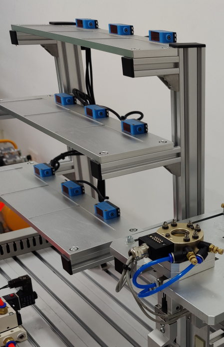 3、流水線模塊:流水線應用場景與工廠實際物流情況相似,可進行機器人點位示教編程與調(diào)試,可根據(jù)學習內(nèi)容不同而設置不同挑選形式,可根據(jù)工件不同采用不同的夾取夾具。