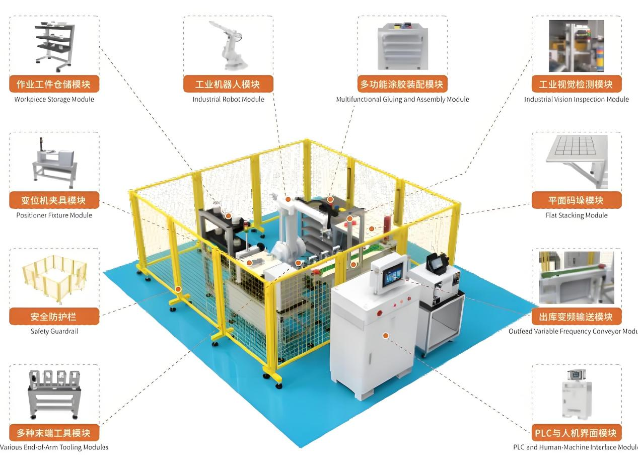 LGGY-K50型工業(yè)機器人應用工作站任務載體采用模塊化設計,具備獨立性、兼容性、可移植性等特點;并預留了擴展與升級的接口,根據(jù)市場需求進行不斷的開發(fā)升級或者學校用戶自行創(chuàng)新設計新的功能模塊。