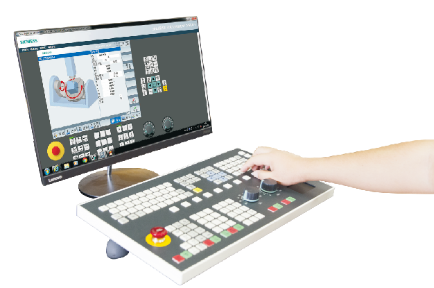 LGY-SKG16型西門子標(biāo)準(zhǔn)五軸數(shù)控面板中的鍵位布局與實際使用中的機床面板相一致,使用者更容易上手。初學(xué)者學(xué)習(xí)高端數(shù)控機床操作,可以先通過該單元進行學(xué)習(xí),然后上機操作,大大降低了初學(xué)者上機時的誤操作所造成的碰撞事故,降低機床的碰撞風(fēng)險。