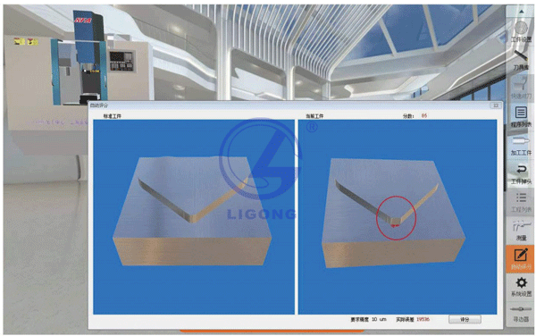 7、能夠進(jìn)行數(shù)控系統(tǒng)的數(shù)字孿生虛實(shí)融合實(shí)訓(xùn)操作和考核, 系統(tǒng)支持對(duì)加工結(jié)果進(jìn)行自動(dòng)評(píng)分。