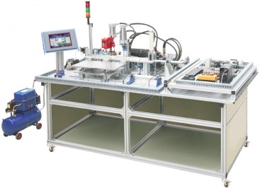 機電液氣一體化綜合實訓(xùn)考核裝置的實訓(xùn)工作臺為鋁合金型材組合而成,臺面上安裝有上料、傳送、沖壓加工、夾緊、 鉆孔加工、分揀、入料槽等,并配有液壓系統(tǒng)、氣壓系統(tǒng)、變頻器及繼電器控制、PLC等
