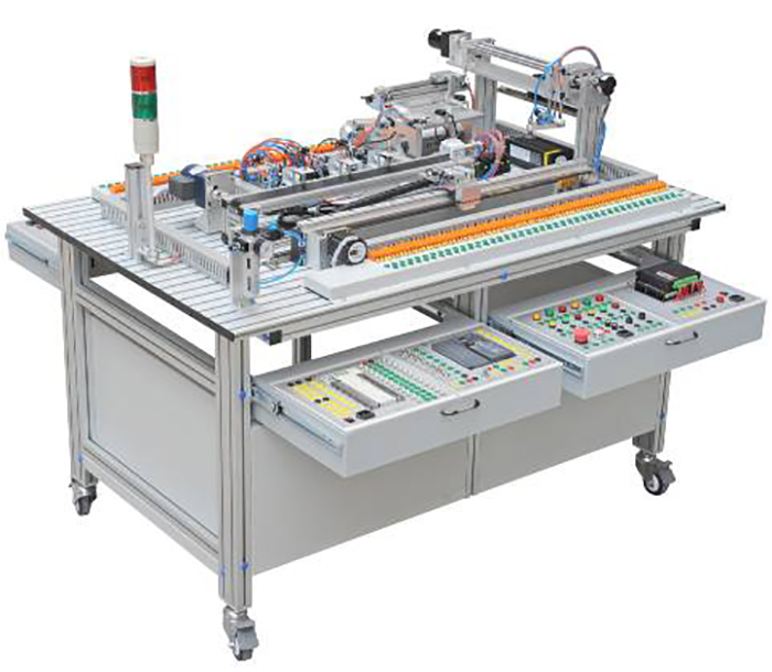 本設(shè)備采用鋁合金導(dǎo)軌式實訓(xùn)臺,實訓(xùn)臺架以經(jīng)氧化處理的高材質(zhì)20mm×80mm、30mm×60mm鋁合金作為設(shè)備主要框架材料,實訓(xùn)臺采用雙面4抽屜結(jié)構(gòu),底部裝有4個導(dǎo)向輪,方便實訓(xùn)臺架移動。模塊采用標準結(jié)構(gòu)和抽屜式模塊放置架,互換性強;按具有生產(chǎn)性功能和整合學(xué)習(xí)功能的原則確定模塊內(nèi)容,使教學(xué)或競賽時可方便的選擇需要的模塊。