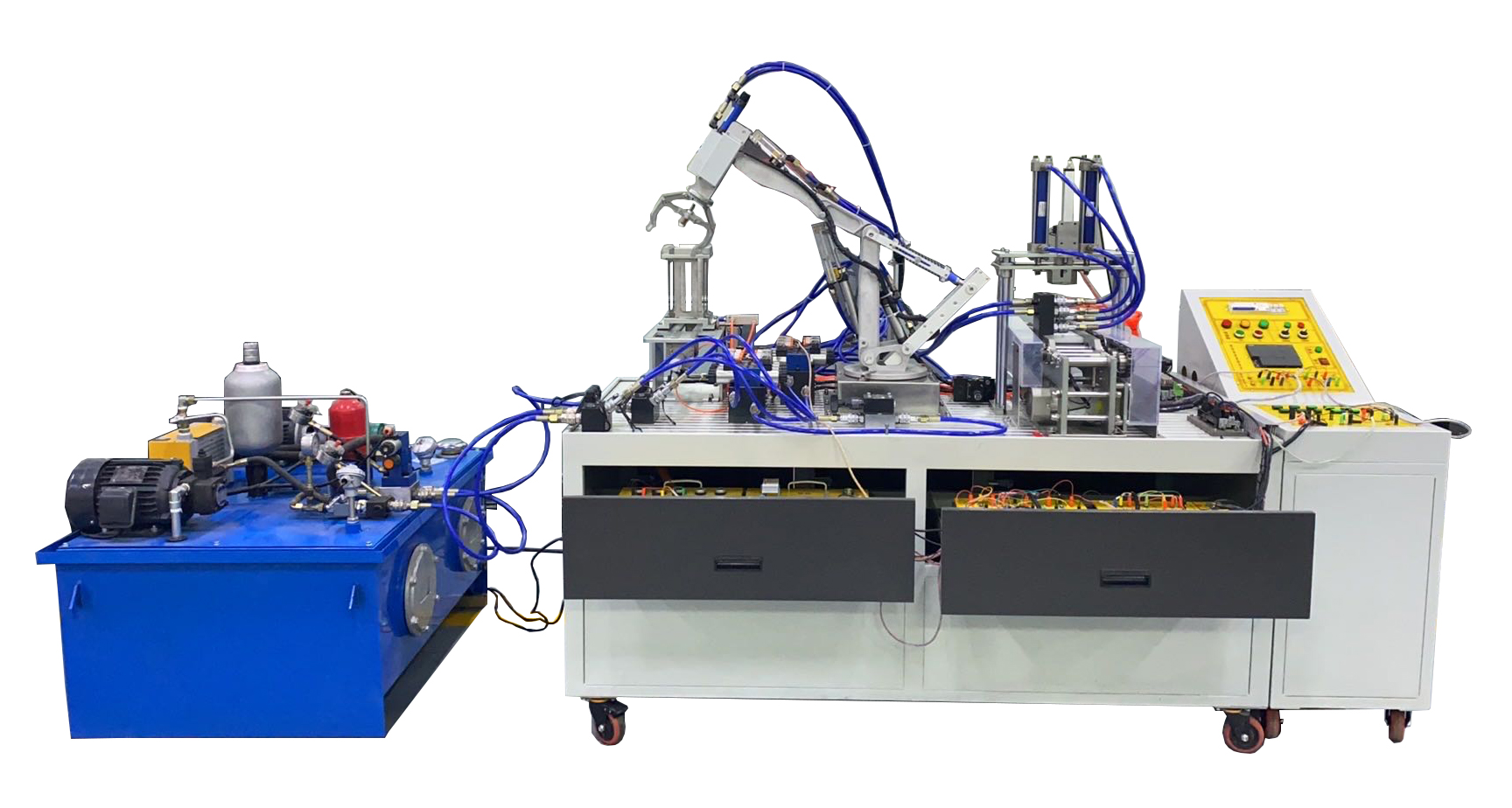 機電液一體化智能綜合實訓平臺主要由實訓平臺、五級液壓機械手、液壓元件模塊、液壓閥實訓模塊、氣動元件模塊、電氣控制模塊、測控儀表、裝調(diào)工具、實訓配件等組成。