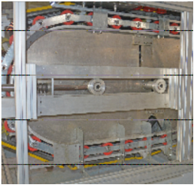 采用彈簧式張緊裝置,使梯級(jí)鏈條始終保持張緊狀態(tài),及時(shí)抵消在可控范圍內(nèi)因梯級(jí)伸長(zhǎng)而造成梯級(jí)(踏板)等相關(guān)部件的偏離、晃蕩、沖撞與噪聲。本裝置全部采用鋁合金板材制作。