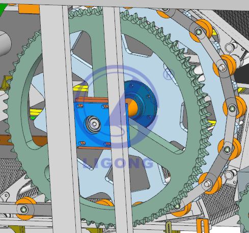 1、傳動齒輪采用10mm厚鋁合金板材數(shù)控精加工而成,精度高重量輕,不生銹,