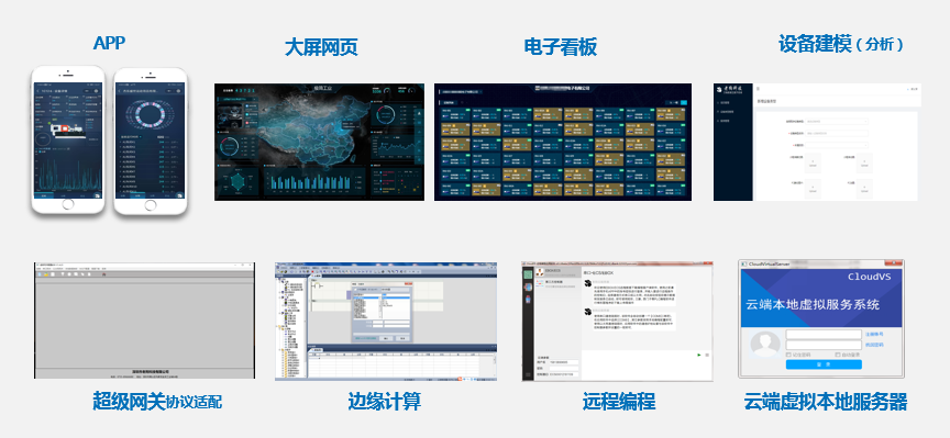 工具化軟件應(yīng)包含設(shè)備建模軟件、手機(jī)APP或者小程序、大屏網(wǎng)頁(yè)、電子看板、基于JSON的API接口、云組態(tài)、霧計(jì)算軟件等;