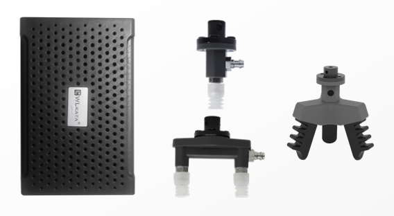 機(jī)器人開(kāi)發(fā)氣動(dòng)套件包含氣動(dòng)吸盤、柔爪、氣源。安裝于機(jī)械臂末端,實(shí)現(xiàn)物品抓取與釋放