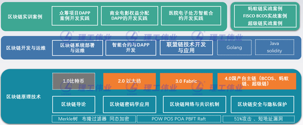 產(chǎn)品提供的教學(xué)資源包含我們自主研發(fā)的10門區(qū)塊鏈實(shí)驗(yàn)及教學(xué)資源,共計(jì)130+實(shí)驗(yàn)。其中,區(qū)塊鏈原理技術(shù)類課程4門,該類課程主要介紹區(qū)塊鏈系統(tǒng)底層的技術(shù)原理,涉及密碼算法、共識(shí)機(jī)制、安全機(jī)制等,知識(shí)點(diǎn)包括常見(jiàn)的哈希、加密算法、梅克爾樹(shù)、布隆過(guò)濾器、多方計(jì)算、共識(shí)機(jī)制、安全隱私等。區(qū)塊鏈開(kāi)發(fā)與運(yùn)維類課程3門,以全球最成熟以太坊和Hyperledger Fabric開(kāi)源項(xiàng)目,以及螞蟻鏈、Fisco BCOS等國(guó)內(nèi)主流項(xiàng)目為基礎(chǔ),介紹其部署、測(cè)試、運(yùn)維、智能合約/鏈碼開(kāi)發(fā)、DAPP開(kāi)發(fā)等實(shí)踐技術(shù)。區(qū)塊鏈案例實(shí)訓(xùn)類課程3門,從實(shí)際應(yīng)用案例的角度解析區(qū)塊鏈技術(shù)。