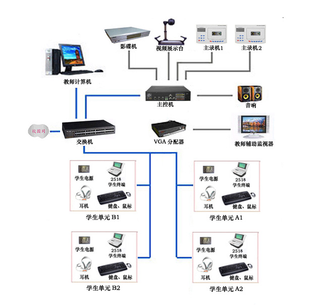 LG-2518型 數(shù)字語言學(xué)習(xí)系統(tǒng)基于全球先進(jìn)的TCP/IP架構(gòu)與先進(jìn)的高速DSP(數(shù)字信號處理器)處理技術(shù),緊扣教育部*新英語教學(xué)大綱要求,并結(jié)合科學(xué)的輔助教學(xué)思想,豐富的學(xué)習(xí)資料,徹底突破了傳統(tǒng)語音室只作單純教學(xué)工具,非人性化的特點(diǎn),大大提高了學(xué)生學(xué)習(xí)效率。產(chǎn)品注重對學(xué)生聽、說、讀、寫、譯能力的培養(yǎng)和訓(xùn)練。充分考慮和合理繼承了現(xiàn)有教學(xué)模式中的優(yōu)秀部分,還新增了強(qiáng)調(diào) 個性化學(xué)習(xí)、自主式學(xué)習(xí)的學(xué)生自習(xí)模式 教學(xué)資料來源廣泛全面,可與Internet網(wǎng)絡(luò)連接盡情下載,也可通過電腦從光盤、磁帶等轉(zhuǎn)載,系統(tǒng)提供音頻 轉(zhuǎn)換程序,簡單輕松的及時滿足您的需要.強(qiáng)大的備課管理系統(tǒng),讓你不再受傳統(tǒng)的教學(xué)方法影響。